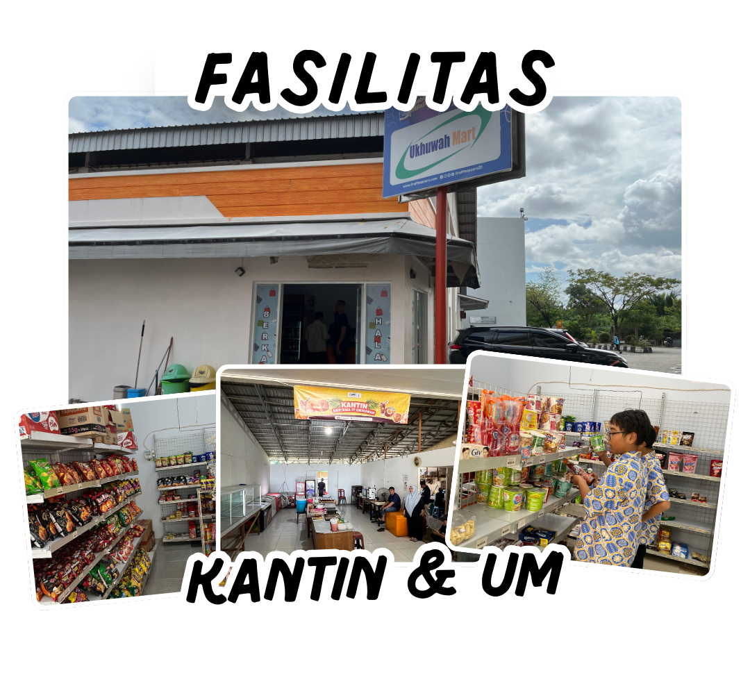 "Kantin Sekolah dan Ukhuwah Mart hadir sebagai fasilitas penunjang kenyamanan dan kebutuhan siswa selama berada di lingkungan sekolah. Kantin menyediakan makanan dan minuman yang bersih, sehat, dan terjaga kualitasnya, sehingga mendukung pola hidup sehat bagi siswa. Sementara itu, Ukhuwah Mart melengkapi kebutuhan siswa dengan berbagai perlengkapan belajar dan kebutuhan harian yang mudah diakses. Kedua fasilitas ini tidak hanya berfungsi secara praktis, tetapi juga menjadi sarana pembelajaran karakter, seperti kemandirian, kejujuran, kedisiplinan, dan tanggung jawab dalam kehidupan sehari-hari di sekolah.."