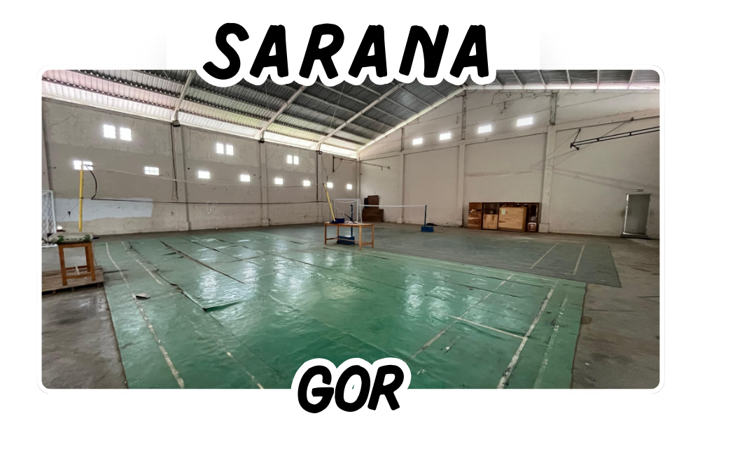 "GOR sekolah merupakan fasilitas olahraga multifungsi yang dapat digunakan untuk bermain badminton dan voli, mendukung aktivitas fisik siswa serta pembinaan kebugaran, kerja sama, dan semangat kebersamaan."